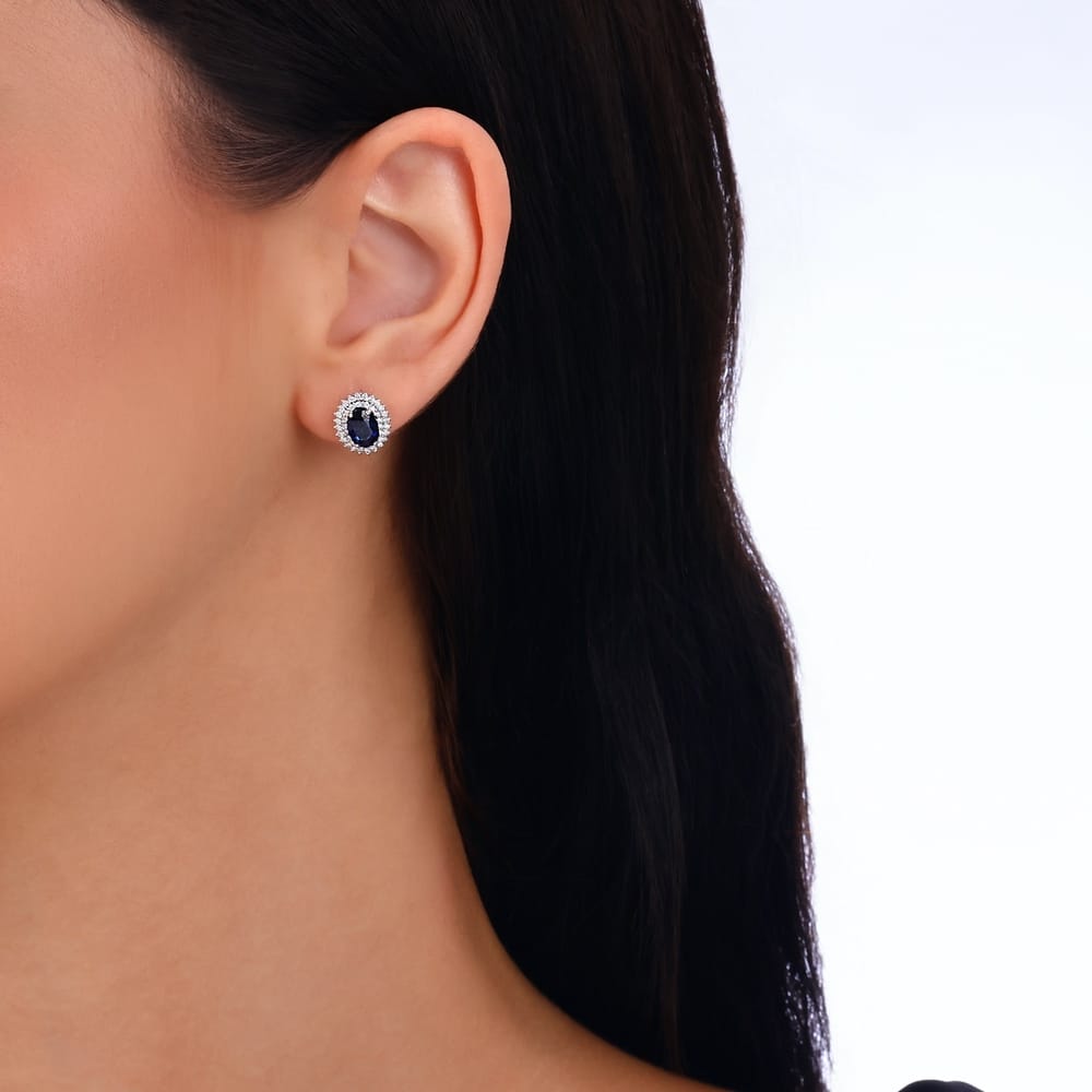 Cercei aur 18 kt cu Diamante si Safire