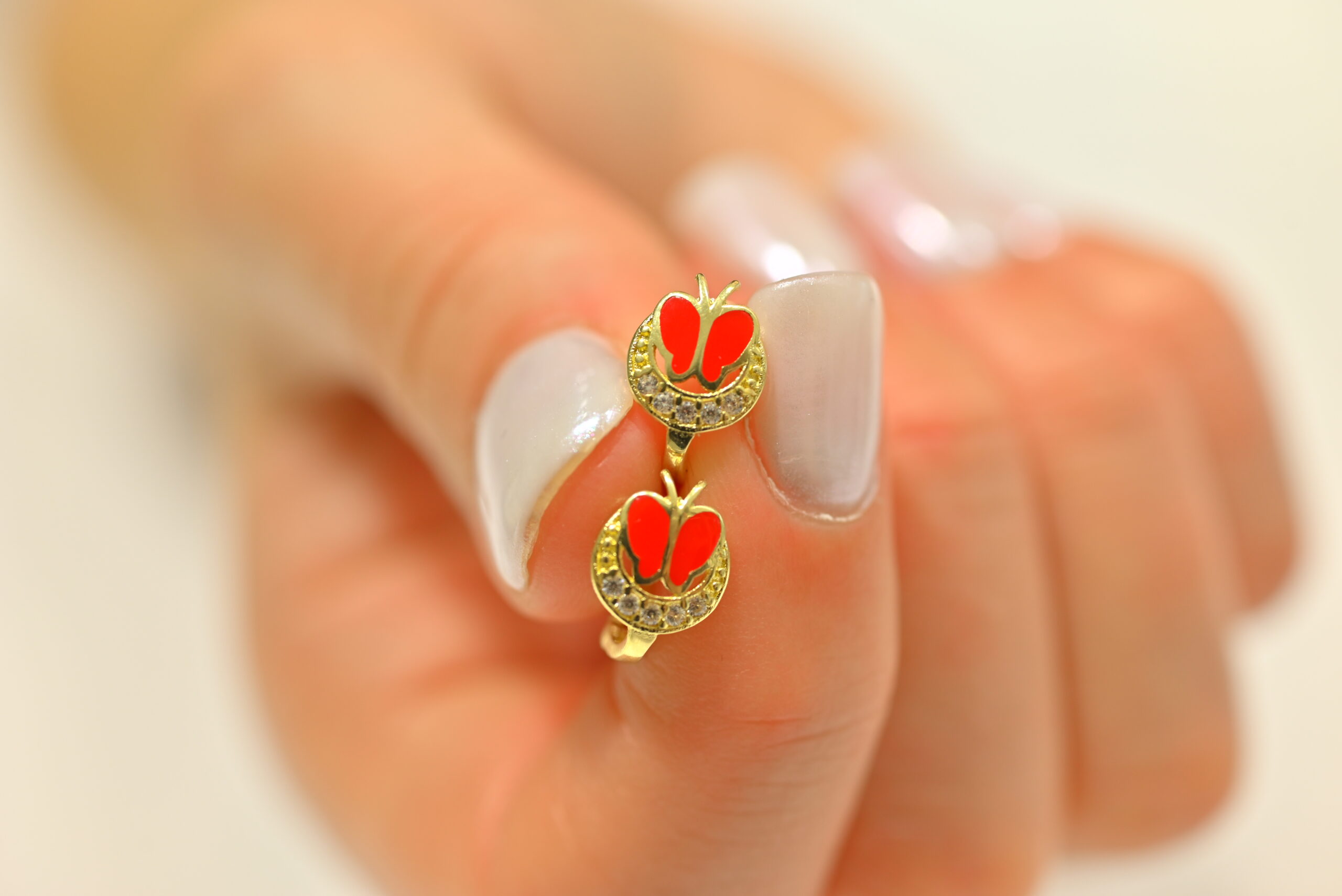 Cercei pentru copii din aur galben de 14K cu Email colorat